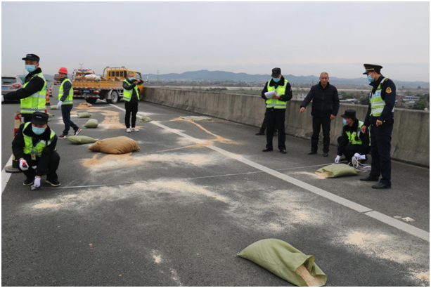 此次演練模擬場(chǎng)景為:涪江特大橋上一貨車發(fā)生單車事故,車上貨物傾撒,造成環(huán)境污染,道路堵塞。接到報(bào)警后,應(yīng)急處置演練領(lǐng)導(dǎo)小組立即啟動(dòng)應(yīng)急預(yù)案,高速交警、交通執(zhí)法、路產(chǎn)維護(hù)、安宏救援、綿陽(yáng)路橋等相關(guān)人員迅速集結(jié)趕赴事發(fā)地展開(kāi)搶險(xiǎn)救援,同時(shí)執(zhí)行公路斷道告知、實(shí)施交通管制、清理污染物、積極搶通道路恢復(fù)交通等應(yīng)急措施,快速消除了安全隱患,保障了道路暢通。