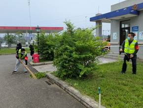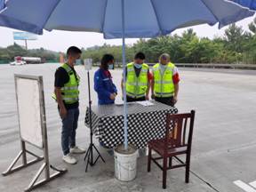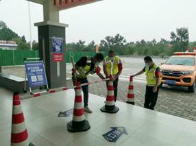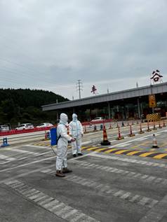 在收費(fèi)站,黨員志愿者積極主動(dòng)配合屬地政府開展疫情防控工作,不間斷開展場(chǎng)所消殺,疏導(dǎo)出站車輛,疏散滯留人員,清掃環(huán)境衛(wèi)生。