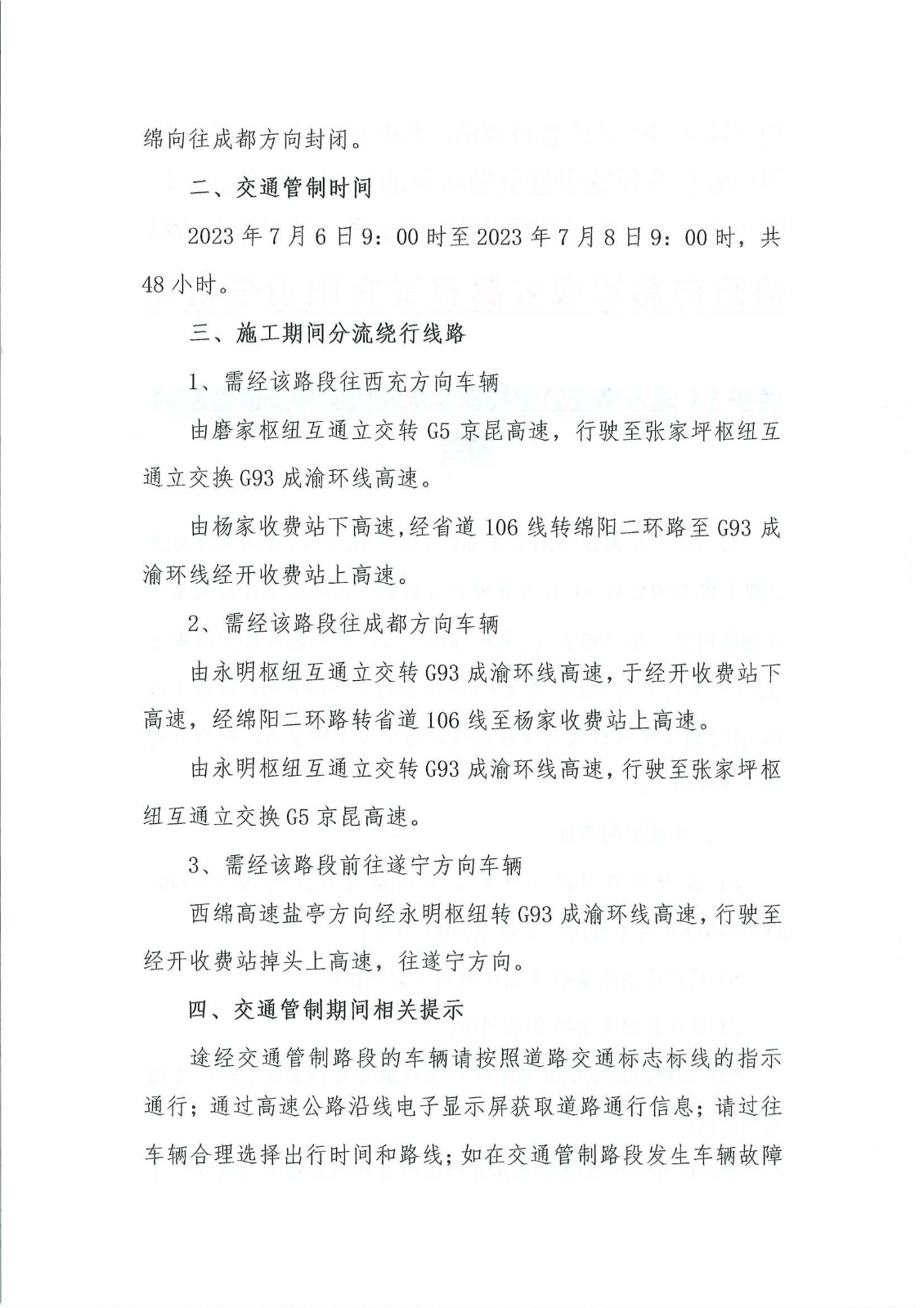 關(guān)于S1成萬高速公路楊家至永明段實行交通管制的通告